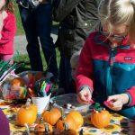 We had a great time at the Fall Foliage Festival Saturday, October 6 at the Boothbay Railway Village. Along with the Boothbay Harbor Memorial Library, we welcomed more than 75 children at our “children’s corner,” where we helped them decorate pumpkins and turn oyster shells into decorative ornaments and cardboard cups and ribbon into jellyfish.