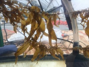 One tank is being kept at 59 degrees F; a second at 63 degrees F and a third is at 70 degrees F. The kelp has been growing since January 27.
