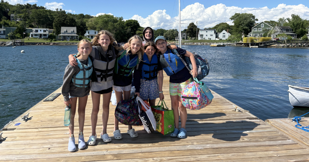 Last year’s Schooner Tyrone crew poses on the BSSC floats. From left to right: Hadley Birmingham, Pauline Nadeau-Miller, Elise Wilson, Sheyenne Upham, Jackie Branch, Ben Hodgdon (rear).